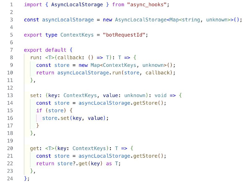 const asyncLocalStorage = new AsyncLocalStorage<Map<string, unknown>>();