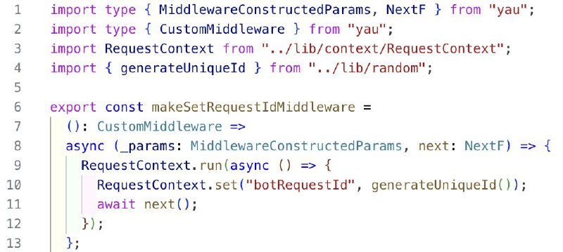Создаем middleware, которое генерирует уникальный ID для каждого запроса и сохраняет его в контексте.