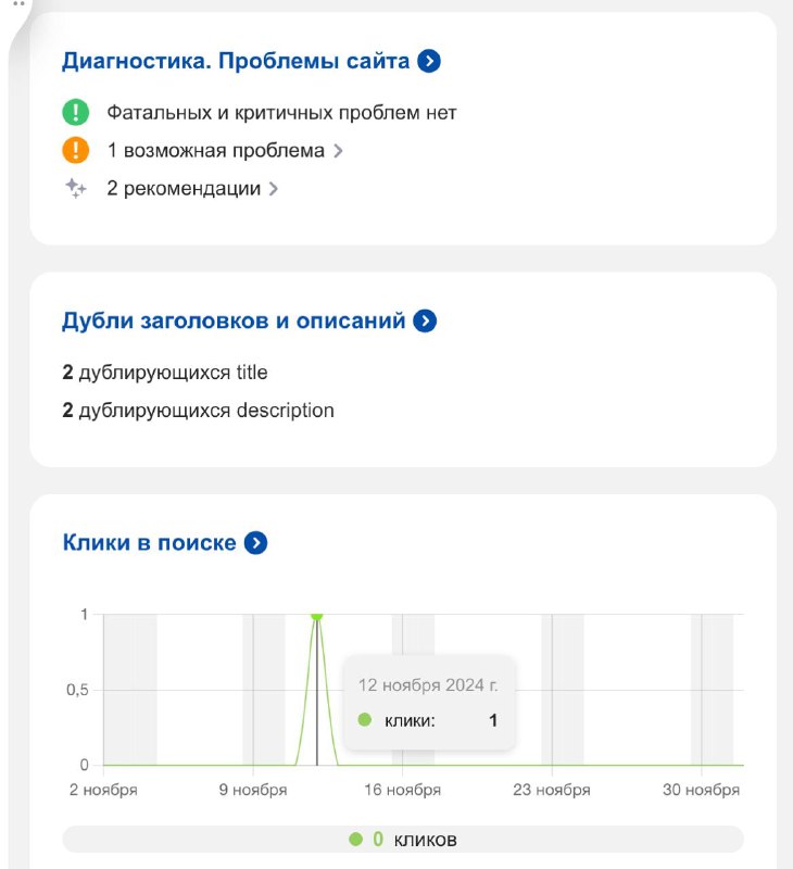 Google Search Console и Яндекс Вебмастер не показывает ничего критичного: рекомендации последнего по "проблеме" – это моя оптимизация для поисковых ботов, а дублирование title и description, думаю, пока не критичны.